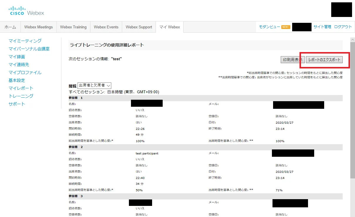 - A list of participants’ attendance will be displayed. Click “Export Report” to download the displayed content as a CSV file.