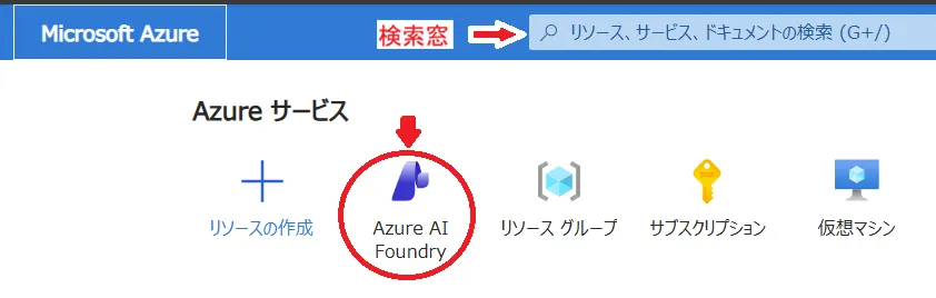 Microsoft Foundryに変更になる可能性があります. - 一覧に無い場合,Portal 画面上部にある検索窓に