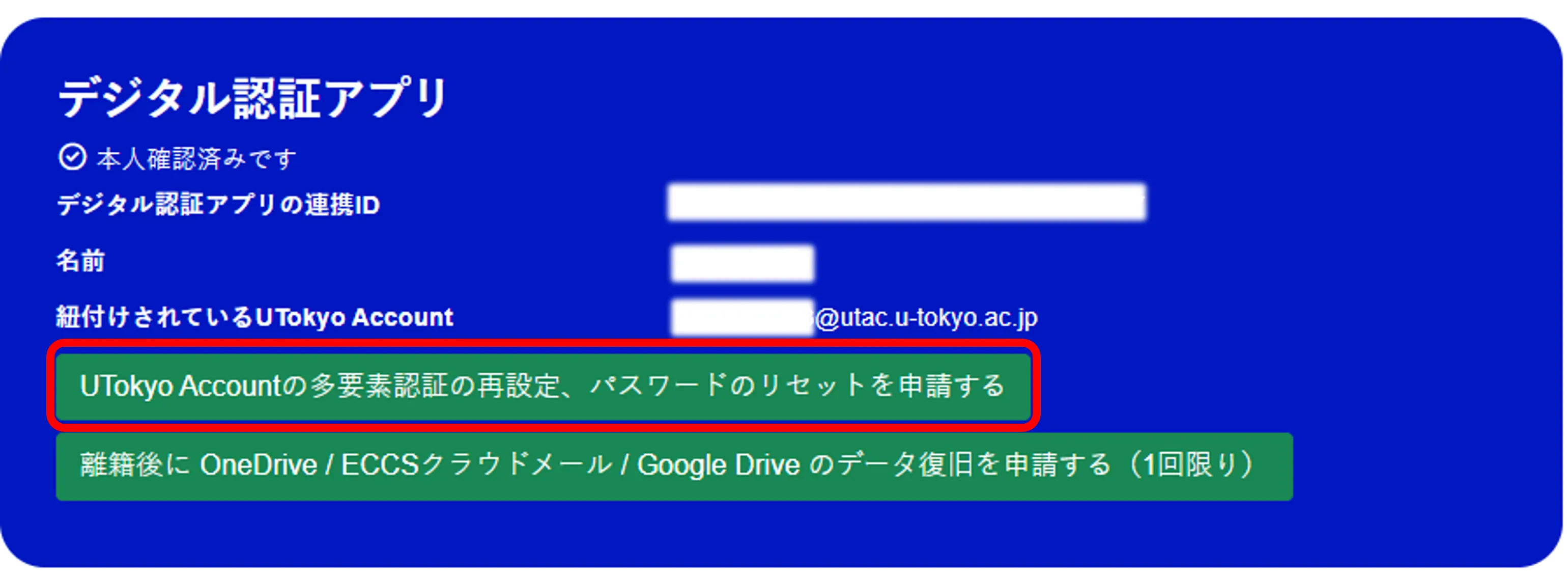 「UTokyo Accountの多要素認証の再設定、パスワードのリセットを申請する」を押してください.