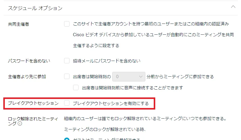 ブレイクアウトセッションは,スケジュール時に設定するか,ミーティングが始まってからでもメニューバーから有効にする必要があります.