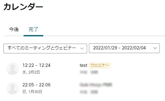 - 「完了」をクリックし,出席者一覧を取得したい会議を選択します.