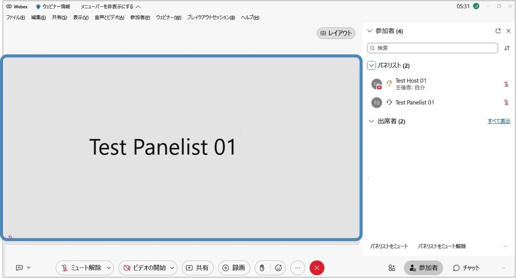 パネリストはウェビナーに電話音声で参加している場合,主催者から設定した表示名とサブタイトルは表示されません.