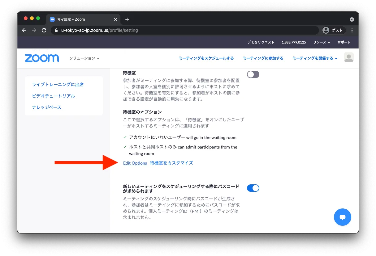 - 「待機室オプション」の「edit options」を選択します.